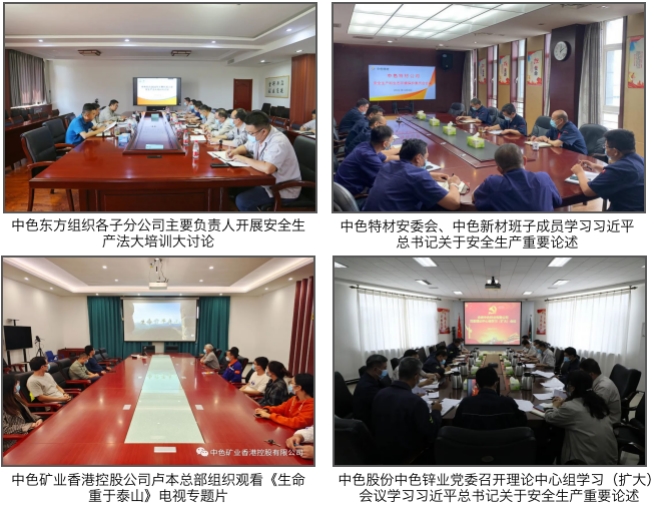 中國有色集團持續深入學習貫徹習近平總書記關于安全生產重要論述精神和國務院安委會關于安全生產十五條措施,組織各級領導干部再次觀看學習《生命重于泰山》電視專題片和《遵守安全生產法 當好第一責任人》安全生產月主題宣傳片,推動各級企業主要負責人切實擔當安全生產“第一責任人”責任,嚴格履行安全生產法規定的7項職責,做到知責于心、明責于行、擔責于肩、盡責于常。