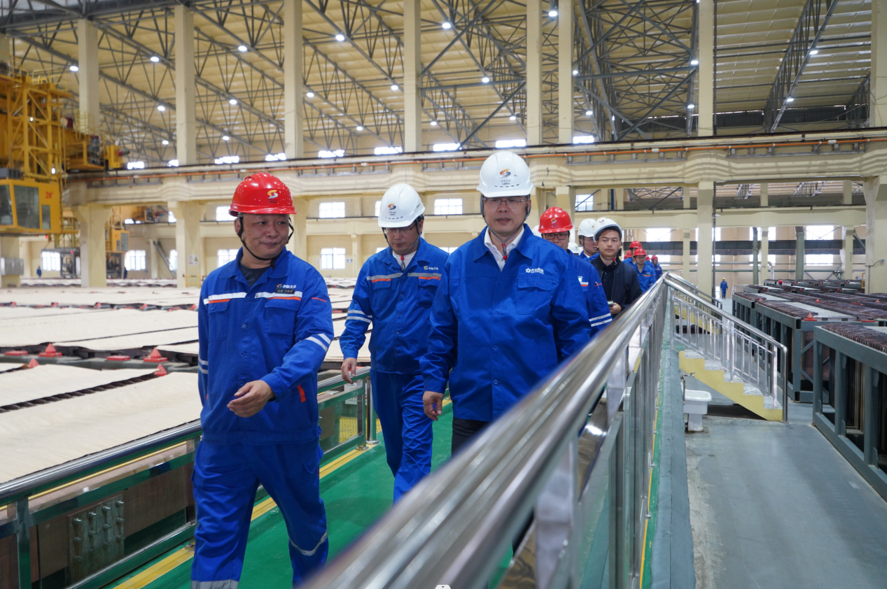 圖丨奚正平董事長(zhǎng)參觀中色大冶弘盛銅業(yè)電解片區(qū)