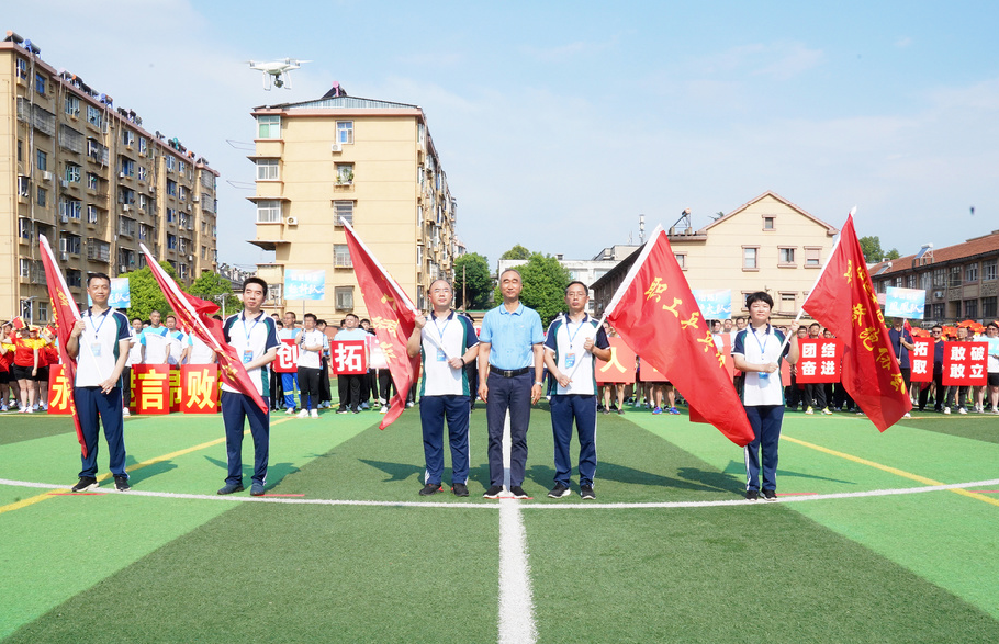 ????公司黨委書記、董事長、總經理胡國斌宣布運動會開幕,并為公司羽毛球協會等5個公司體育協會授旗。